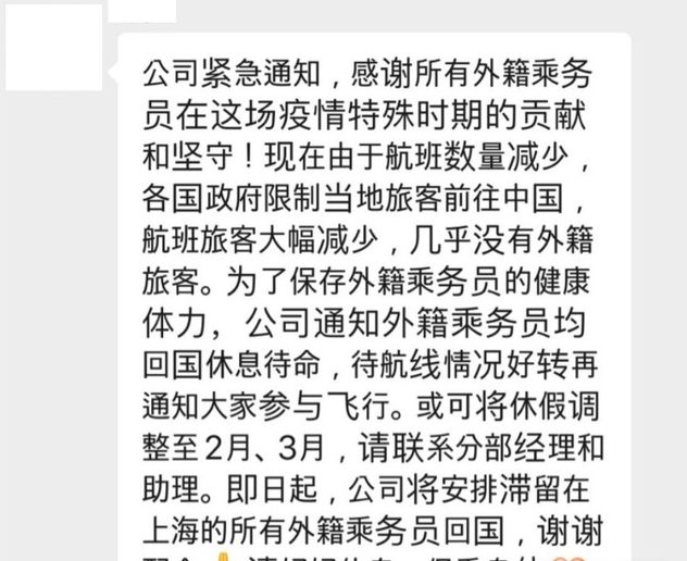 아울러 중국인 이사급 관리자를 상대로 내린 공지에는 항공사 평가 규정에 따라 현재 중국에 남아있는 모든 한국인 승무원들이 한국으로 돌아가도록 조정하는 내용도 포함됐다.
