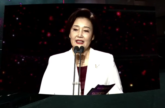 ▲지난달 31일 서울 영등포구 여의도 KBS홀에서 열린 ‘2019 KBS 연기대상’에서 박영선 중소벤처기업부 장관이 ‘K드라마 한류스타상’ 시상자로 나서고 있다. (출처=유튜브 채널 ‘KBS 한국방송’ 영상 캡처)