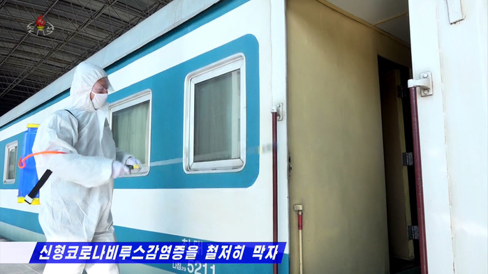 ▲조선중앙TV2일 북한 신의주청년역에서 실시된 신종 코로나바이러스 감염증(우한 폐렴) 방역 작업을 보도하고 있다. (사진=뉴시스=조선중앙TV 캡처)