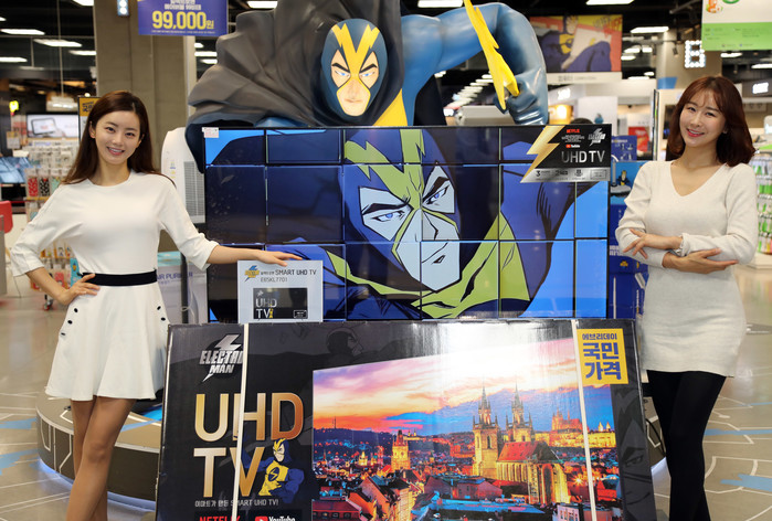 이마트는 영상 컨텐츠에 최적화된 ‘일렉트로맨 65인치(163cm) 스마트 TV’를 55만9,000원에 출시하고 오는 13일부터 전국 이마트 매장에서 본격 판매할 예정이다.