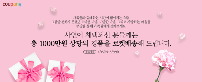 쿠팡은 내달 3일까지 ‘가정의달 고객 사연 응모 이벤트’를 진행한다고 20일 밝혔다.
