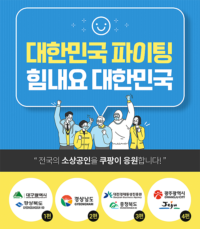 쿠팡은 광주, 제주 지방자치단체와 협력해 ‘힘내요 대한민국’ 기획전을 진행한다고 27일 밝혔다.