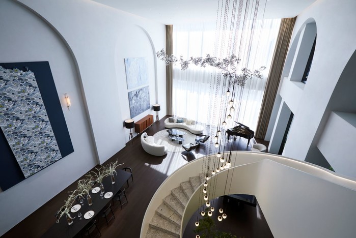 가족 공용공간인 1층과 침실을 중심으로 개인적인 공간으로 구성된 2층으로 나누어 동선을 분리했으며 대형 드레스룸과 분리형 욕실, 전용 풀을 갖췄다. 또 와인 셀러와 무비스튜디오, 티룸 등 개성이 뚜렷한 주거 공간을 제공한다.