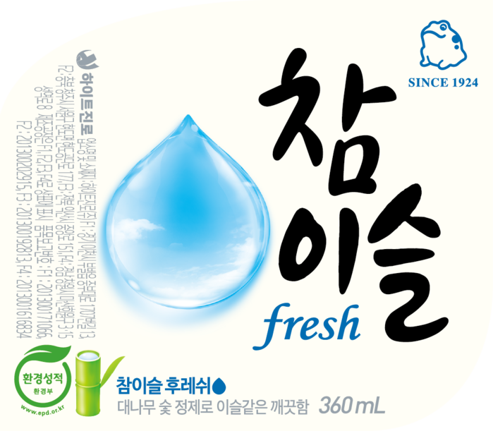 참이슬후레쉬로 라인이 통합됨에 따라 패키지 디자인도 변경된다. 참이슬 브랜드 기존에 적용된 이슬을 형상화한 이형 라벨에 주류업계 최초로 인증 받은 ‘환경성적표지(EPD)’ 마크를 적용했다.