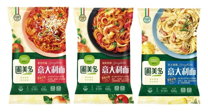 | ▲ 풀무원이 중국에서 판매 중인 파스타 3종. 미트토마토스파케티, 아라비아따스파게티, 치즈베이컨스파케티(왼쪽부터)(사진제공=풀무원) |