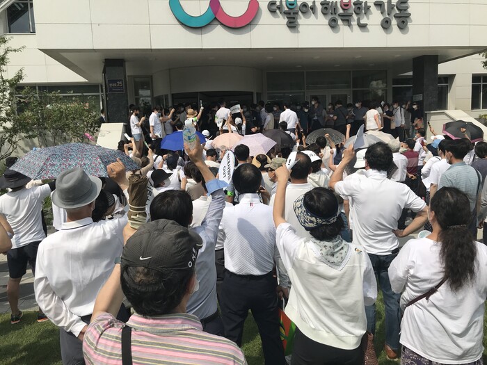 하지만 대의원회의가 예정대로 열리자 조합원들은 강동구청으로 향했고, 입주자모집공고승인권자인 이정훈 강동구청장으로부터 해임 총회 이전까지 관련 행정 절차를 일제히 중단하겠다는 약속까지 받았다. 비대위는 조합 집행부를 해임하는 총회를 내달 8일 열 계획이다.