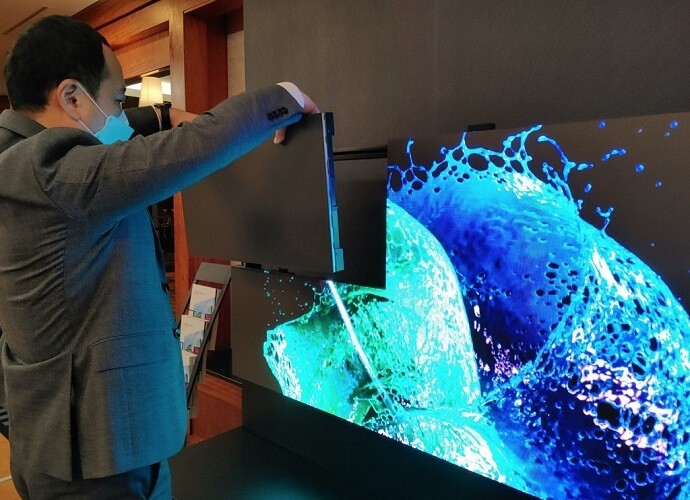 LG전자가 이번에 공개한 제품은 ‘LSAB009’다. 163인치 초대형 사이니지로, 화질은 4K, 최대 밝기는 1200니트다. 초저반사 기술, 10만분의 1 명암비를 갖춰 각도에 상관없이 화면을 볼 수 있는 것은 물론 화질 또한 뛰어나다. 특히 대형 마이크로 LED 시장에 먼저 진출한 삼성전자의 제품보다 촘촘한 픽셀 간격 0.9㎜를 구현한 것이 특징이다. LG전자 관계자는 “B2B를 겨냥한 제품”이라며 “조속한 시일 내 출시를 목표로 하고 있다”고 밝혔다.