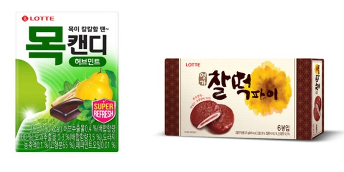 | ▲ 롯데제과 목캔디, 찰떡파이 이미지(제공=롯데제과) |