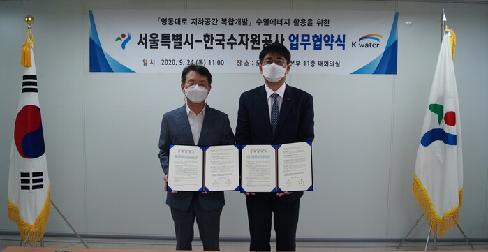 환경부 산하 한국수자원공사는 24일 서울시와 ‘영동대로 복합환승센터 수열에너지 활용을 위한 업무협약’을 체결했다고 밝혔다.