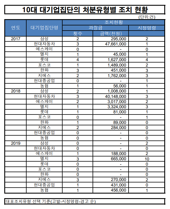한편 공정위가 공개한 자료에 따르면 대기업에 부과한 과징금들은 모두 일정한 기준에 따라 책정되고 있다.