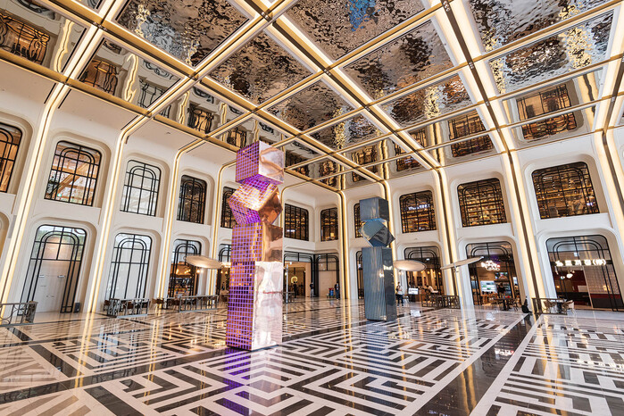 대형 예술작품도 전시했다. 중앙 통로 천장에서 밝은 빛을 뿜어내는 오유경 작가의 ‘코스모스’, 큐브로 기둥을 쌓은 박선기 작가의 ‘CUBE TOWER’ 등이 대표 작품이다.
