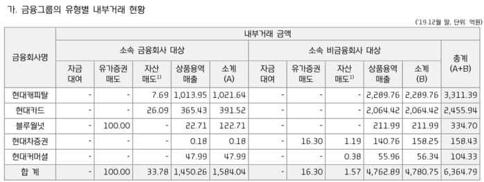 ▲ 현대차금융그룹 내부거래 현황 (자료출처=현대차금융그룹 통합공시)