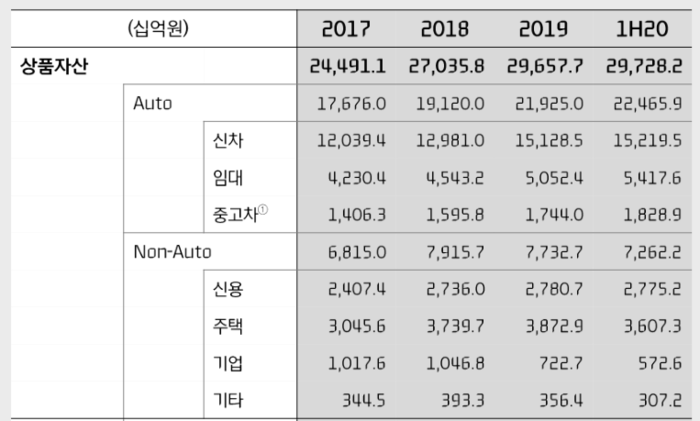 ▲ 현대캐피탈 2020년 2분기 상품자산 현황 (자료출처=현대캐피탈 IR자료)