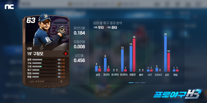 ‘프로야구 H3’는 차세대 야구 매니지먼트 게임이다. 이용자는 감독에 더해 구단주의 역할을 맡아 야구단을 운영한다. 선수의 역량을 파악하고 영입하는 ‘스카우터’와 ‘콜업’ 시스템, 선수의 가치를 평가받는 ‘이적시장’ 등 새로운 시스템이 준비된다. 여기에 엔씨의 AI 기술이 결합되어 생동감 있는 경기 리포트와 하이라이트를 보는 콘텐츠도 마련될 전망이다.