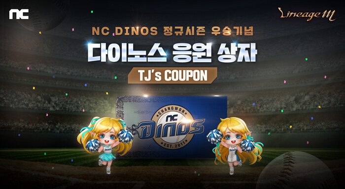 리니지M은 모든 이용자에게 게임 내 상점에서 다이노스 응원 상자를 100 아데나로 제공한다. 다이노스 응원 상자는 한국 시리즈 응원 티켓과 ‘다이노스 응원 휘장, 룬 변환석으로 구성된다.