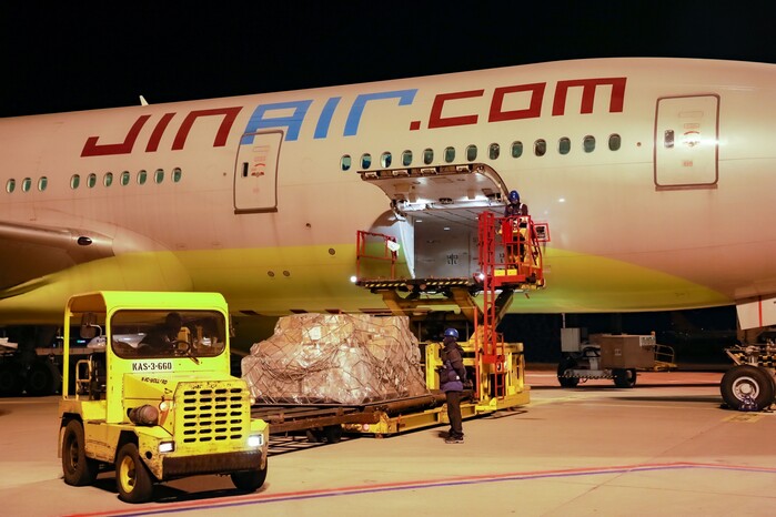 진에어는 지난달 31일 B777-200ER 여객기에 약 23t의 디스플레이 등 전자 부품류 화물을 싣고 미국 LA로 운송했다고 2일 밝혔다. B777-200ER 여객기는 동체 하단부 전체를 화물칸으로 바꿔 운영하는 밸리카고 (Belly Cargo) 방식으로 운항했다.