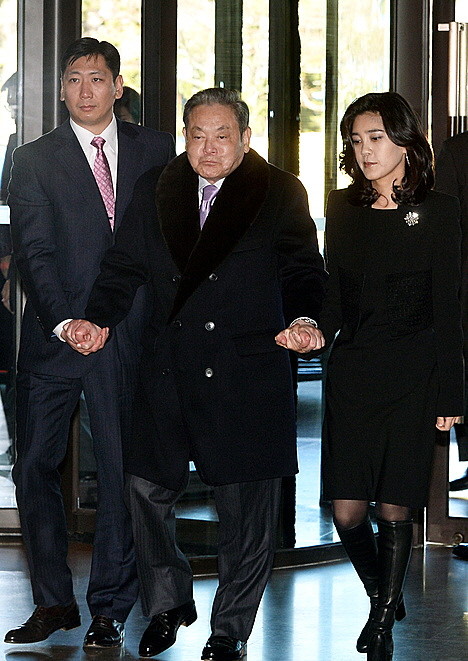 ▲ 이건희 삼성전자 회장이 2일 오전 서울 중구 장충동 신라호텔에서 열린 '삼성그룹 신년하례회'에서 이부진 호텔신라 사장과 하례회장으로 들어서고 있다. 2014.01.02. <뉴시스>