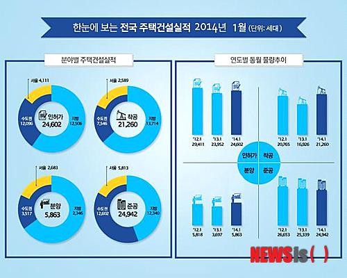 국토교통부는 1월 주택건설 인허가 실적이 전국 2만4602가구(수도권 1만2096가구, 지방 1만2506가구)로 전년동월대비 2.7% 증가했다고 23일 밝혔다.