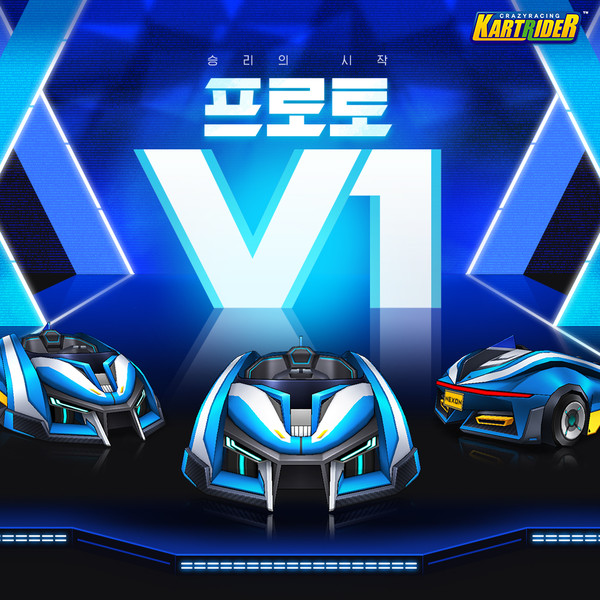 프로토 V1은 카트라이더에서 새롭게 선보이는 열한 번째 엔진 V1이 장착된 최초의 카트바디다. 오는 17일까지 게임 내 이벤트와 퀘스트에 참여해 ‘프로토 V1 부품 조각’을 모아 조합하면 ‘프로토 V1(무제한)’을 획득 가능하며, 매일 접속만 해도 체험할 수 있다.