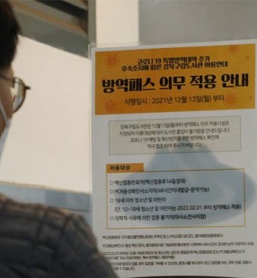 13일부터 식당, 카페, 학원, 도서관 등 실내 다중이용시설을 이용하려면 신종 코로나바이러스 감염증(코로나19) 백신 접종 완료를 증명하거나 감염되지 않았다는 음성 결과 확인이 가능해야 한다. 6일부터 확대 적용된 방역패스(접종증명·음성확인제)의 계도기간이 끝나 13일부터 단속이 이뤄지기 때문이다.