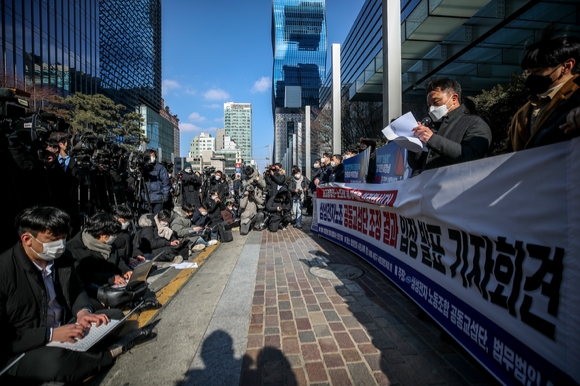 전국금속노동조합연맹 삼성그룹노동조합연대는 지난 23일 오전 11시 서울중앙지법 정문 법원삼거리에서 기자회견을 열고 계열사 대표이사를 상대로 순차적 집단소송을 진행한다고 밝혔다.