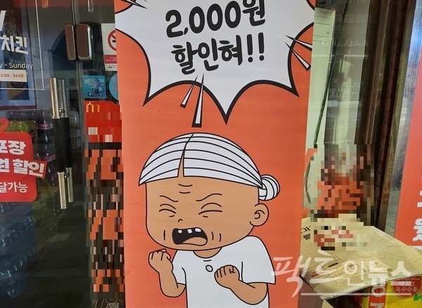 치킨 집위에 치킨집, 그 아래도 치킨집. 경기 성남시 중원구 자혜로 100미터 구간에만 4곳의 치킨집이 있다. (위부터)최근 개점한 치킨집이 포장시 2000원 할인 혜택을 제공한다. 아래 치킨집도 2년전 개점 당시 같은 할인 혜택을 줬으나. 현재는 문을 열다, 닫았다 한다. [사진=정수남 기자]