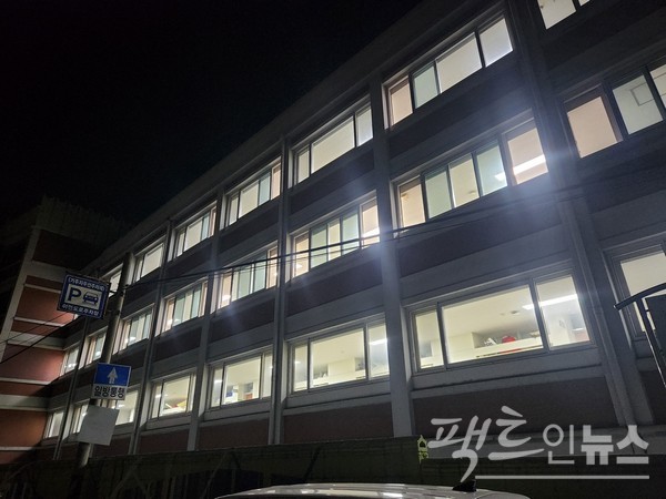 최근 새벽 경기 성남시 중권구에 있는 S대학 교사를 카메라에 담았다.