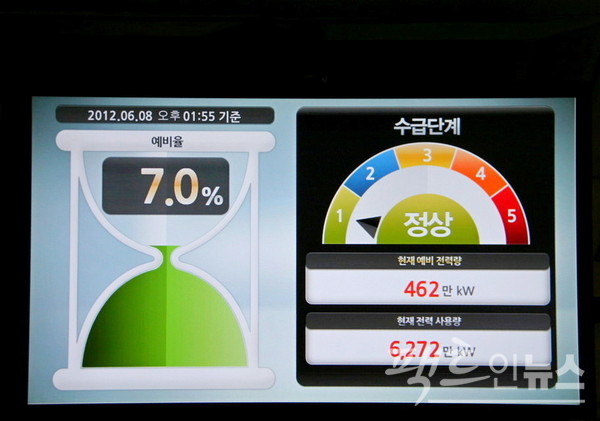 한편, 태풍 카눈이 오기 전인 9일 국내 최대 전력 사용은 15시 8만9935㎽이며, 같은 시각 전력 예비율은 15.4%(1만3838㎽)로 정상이다. 이 시각 국내 전력 설비 용량과 공급 능력은 각각 14만2584㎽, 10만3773㎽다.