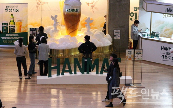 OB가 복합쇼핑몰에 홍보 공간을 마련하고 2030 세대를 공략했다. [사진=정수남 기자]