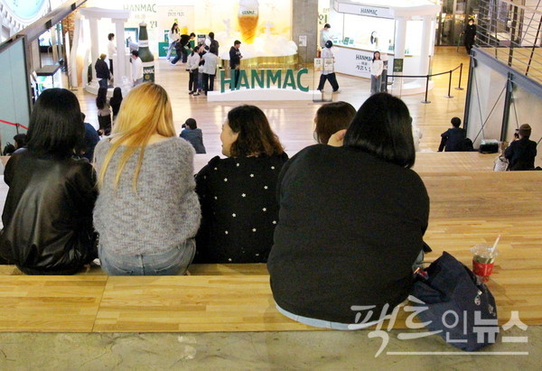 OB가 복합쇼핑몰 벽에서도 모니터를 통해 한맥을 알렸다. [사진=정수남 기자]
