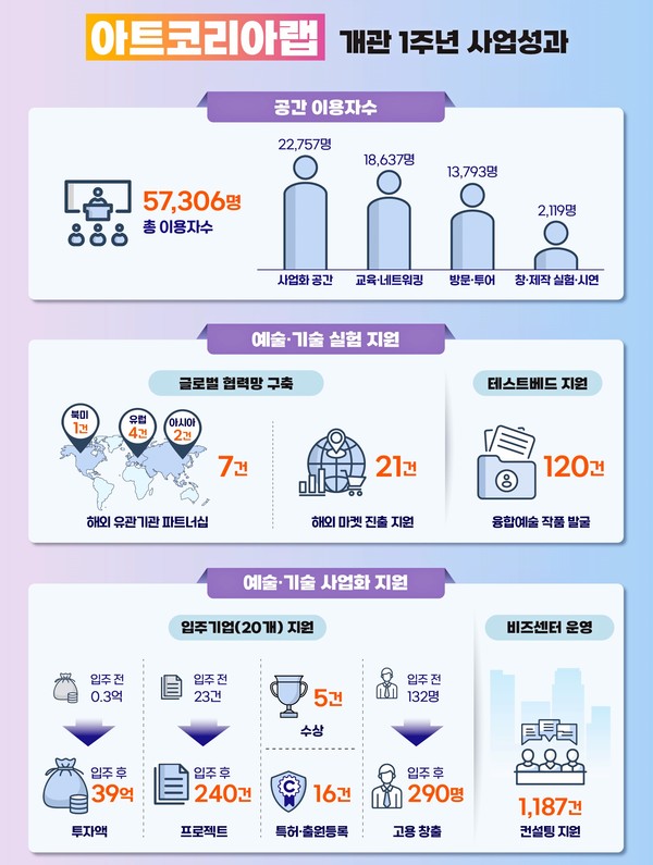 문화체육관광부와 예술경영지원센터가 아트코리아랩 개관 1주년을 맞아 주요 성과를 11일 내놨다.