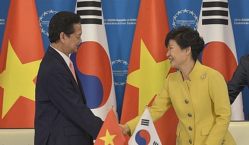 박근혜 대통령은 이날 한·아세안(ASEAN·동남아시아국가연합) 특별정상회의 참석차 부산을 방문해 응웬 떤 중 베트남 총리와 공동기자회견을 갖고 한·베트남 FTA 타결을 선언했다.