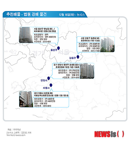 16일 부동산경매정보업체인 지지옥션은 서울 강동구 둔촌동 둔촌하이츠(서울 동부지법), 서울 용산구 한남동 하이페리온(서울서부지법), 경기 의왕시 오전동 의왕모락산동문굿모닝힐(수원지법 안양지원), 경기 안양시 동안구 호계동 호계동현대(수원지법 안양지원) 등을 123주 추천 경매물건으로 소개했다.