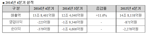 영업이익은 플랜트 및 건설장비 부문에서 일부 대형공사의 환율 변동에 따른 재료비 등 원가 상승과 대손충당금 설정 등의 영향으로 적자를 기록했으나, 조선 및 해양부문에서 이익을 내며 전분기 대비 적자 폭을 크게 줄였다.
