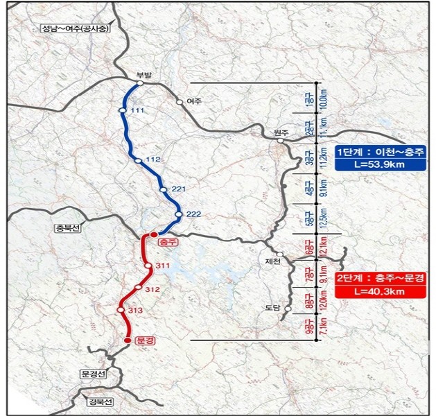 철도공단이 시행하는 중부내륙선(이천∼충주∼문경)은 총사업비 1조 9천억원이 투입되고 이천∼충주 구간은 2019년말, 충주∼문경 구간은 2021년까지 완공을 목표로 추진 중에 있다.