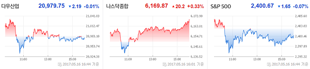 16일(현지시간) 뉴욕증권거래소(NYSE)와 복수 통신사에 따르면 다우존스 30 산업평균지수는 전장대비 0.01%(2.19p) 떨어진 2만 979.75에, S&P(스탠다드앤드푸어스)500지수는 0.07%(1.65p) 하락한 2400.67에 거래 종료했다.