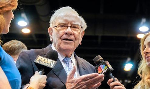 워렌 버핏 버크셔 해서웨이 회장이 5월5일 네브래스카주 오마하에서 열린 연례 주주들과의 만남에서 기자들과 이야기를 나누고 있다. 버핏 회장은 미국과 중국 모두 무역으로 많은 이득을 보고 있기 때문에 양국이 전면적인 무역전쟁을 일으키지는 않을 것이라고 말했다.