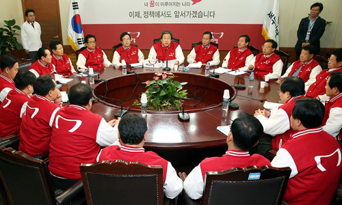 이정현 공보단장도 두 후보의 회동과 관련해 “밀실회동이고 정치회담”이라며 “국민적 합의가 있어야 한다고 해놓고는 민주당이 쇄신안도 내놓지 않은 상황에서 단독 밀실회담을 하겠다고 나선 것은 국민기만과 오만의 참 모습”이라고 강조했다.