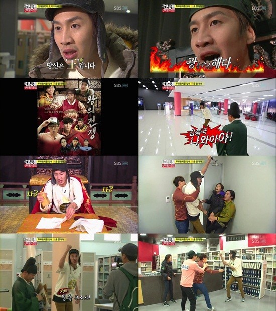 이광수는 더욱 기세등등해져 “김종국 나와”라고 소리치며 폭군으로 변신해 하하와 김종국에게 접근했지만 10분마다 한 번씩 환궁해 종이에 옥새를 찍어야 하는 룰 때문에 이광수는 궁으로 돌아가야 했고, 궁에서 업무를 보며 초조해 하는 이광수의 모습은 보는 이들을 폭소케 했다.